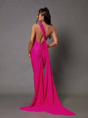 Deze prachtige Jade rugloze maxi-jurk in felroze is perfect voor een avondje uit. De jurk heeft een dramatisch rugloos ontwerp en een maxi-lengte, wat zorgt voor een opvallend silhouet. Maak een statement in deze levendige felroze jurk.